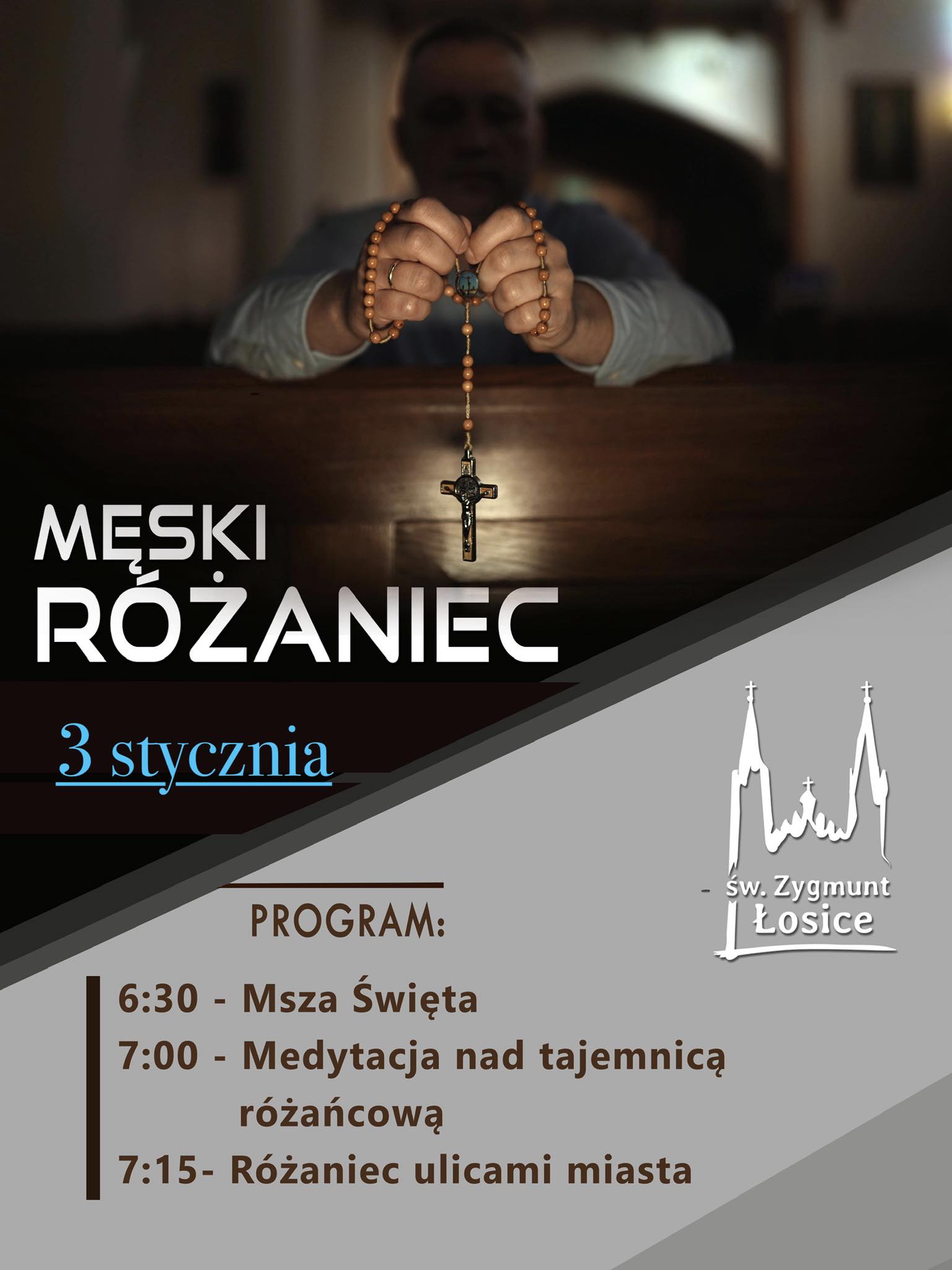 Męski Różanie przejdzie ulicami Łosic w sobotę, 3 stycznia. Spotkanie tradycyjne rozpocznie się od Mszy św. o godz. 6:30 w parafii św. Zygmunta Króla w Łosicach.