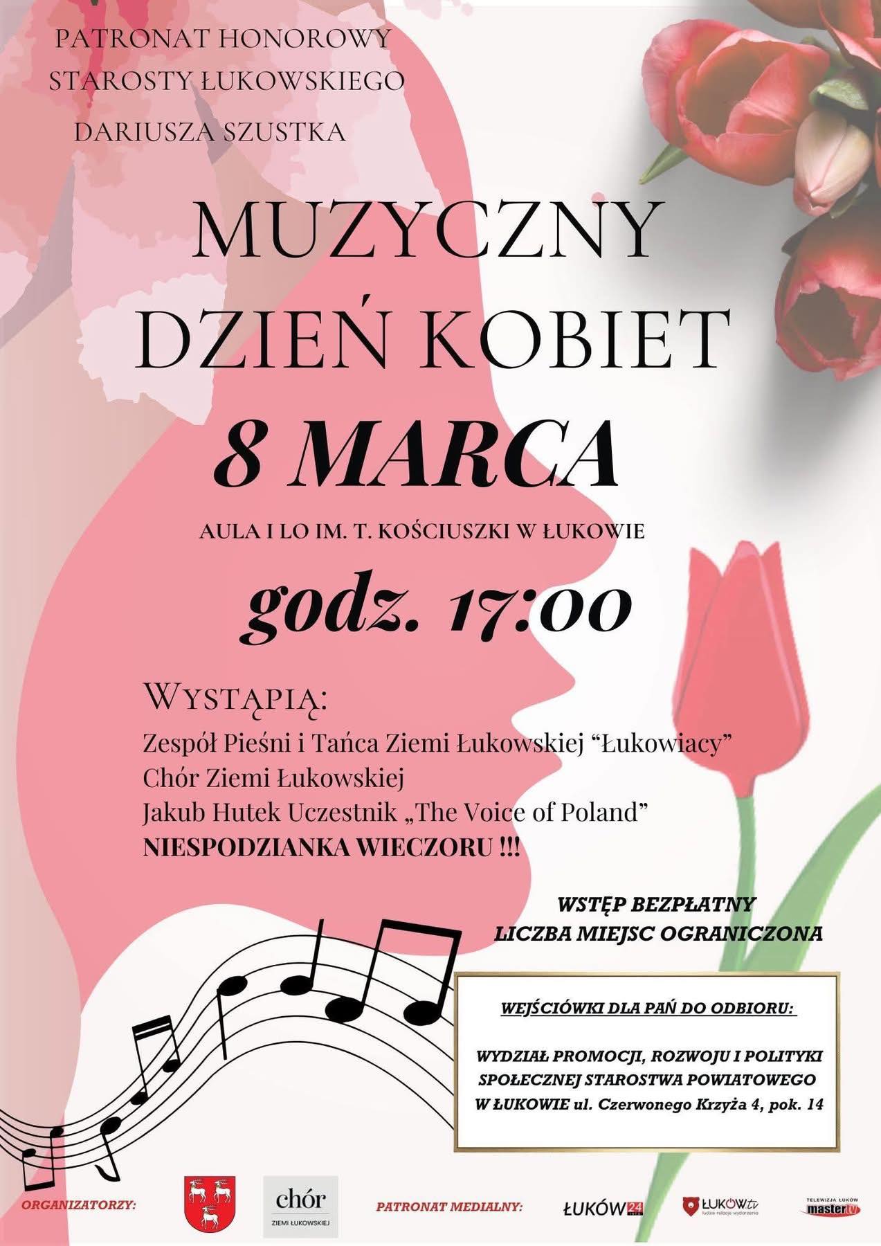 Koncert odbędzie się w niedzielę, 8 marca w auli I LO im. T. Kościuszki. Rozpocznie się o godzinie 17:00. Głównym organizatorem jest powiat łukowski.Wstęp wolny, ale liczba miejsc jest ograniczona.