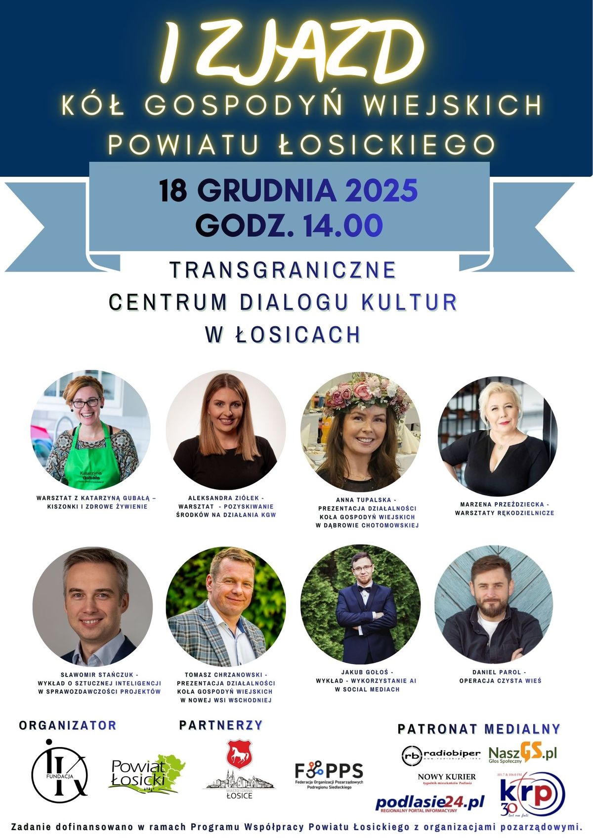 To będzie wyjątkowe wydarzenie mające na celu integrację, wymianę doświadczeń oraz wzmocnienie działalności KGW w regionie. W czwartek, 18 grudnia o godz. 14.00 w powiecie łosickim odbędzie się I Zjazd Kół Gospodyń Wiejskich Powiatu Łosickiego, Spotkanie zgromadzi przedstawicielki i przedstawicieli lokalnych organizacji, ekspertów oraz osoby zaangażowane w rozwój życia społecznego i kulturalnego na terenach wiejskich. Na zjazd można zgłaszać się za pomocą specjalnego formularza.