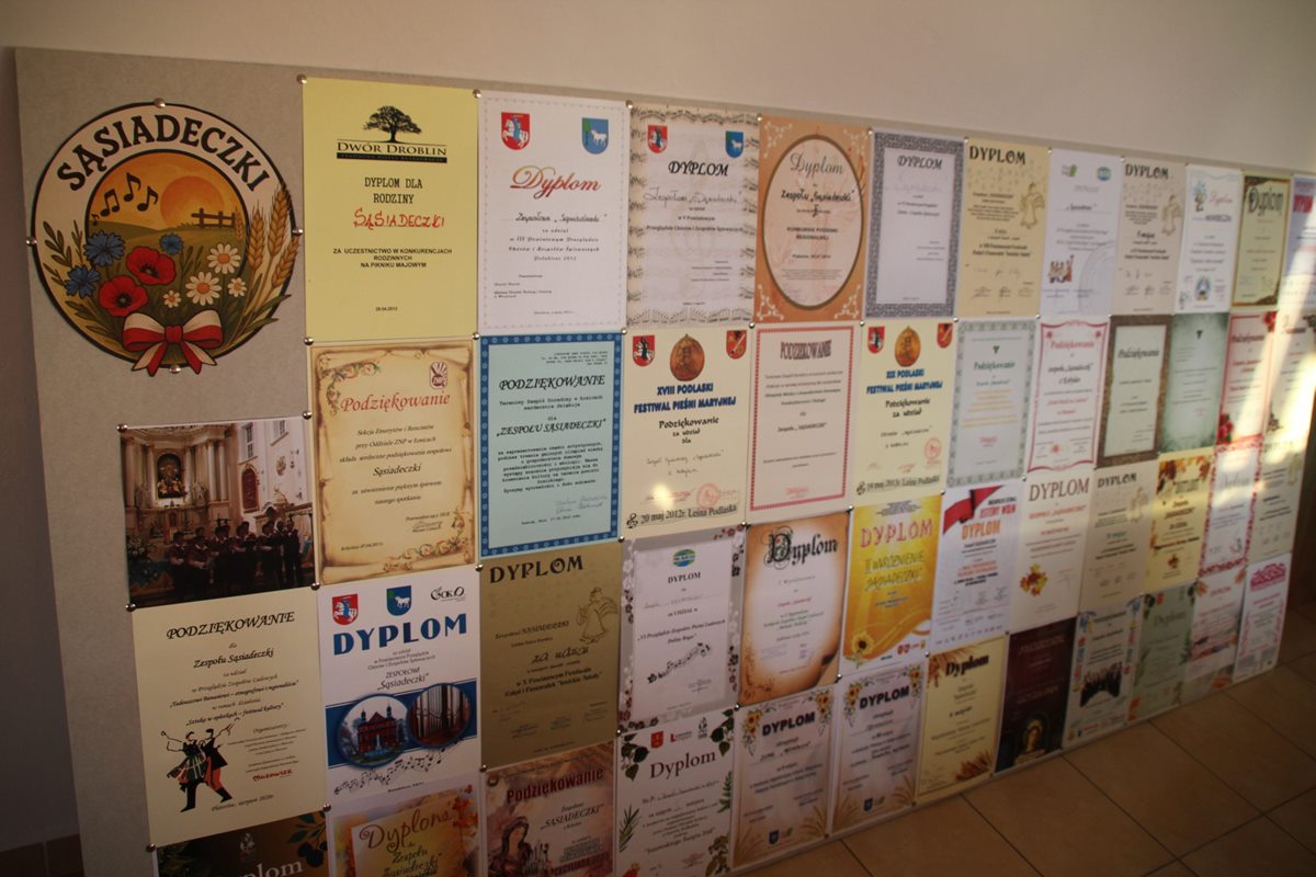 W zespole śpiewa siedem pań. Na akordeonie gra Marek Brodawka. – Śpiewamy piosenki ludowe, biesiadne, religijne, patriotyczne i okolicznościowe. Sąsiadeczki biorą udział w przeglądach, biesiadach, festynach i konkursach – mówi Barbara Poddaniec, która od samego początku prowadzi kronikę zespołu.