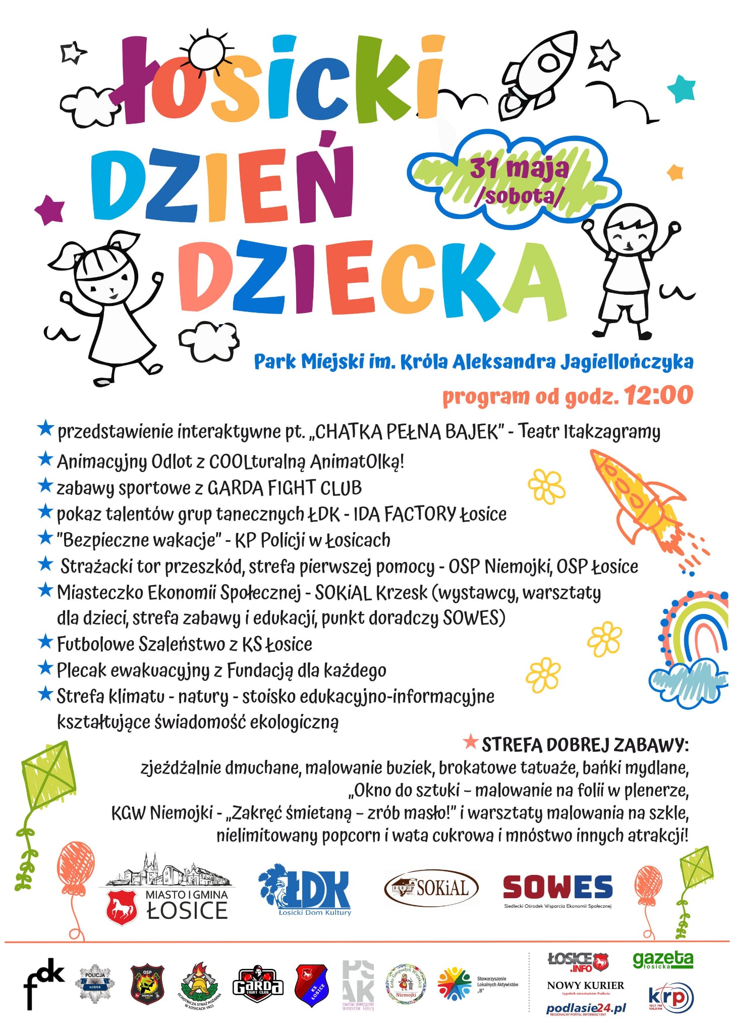 Zbliża się wyjątkowy dzień, na który czekają wszystkie dzieci – zarówno te małe, jak i całkiem duże. Burmistrz Miasta i Gminy Łosice wraz z Łosickim Domem Kultury oraz partnerami zapraszają do wspólnego świętowania Łosickiego Dnia Dziecka. Tegoroczne obchody odbędą się w sobotę, 31 maja w Parku Miejskim im. Króla Aleksandra Jagiellończyka.